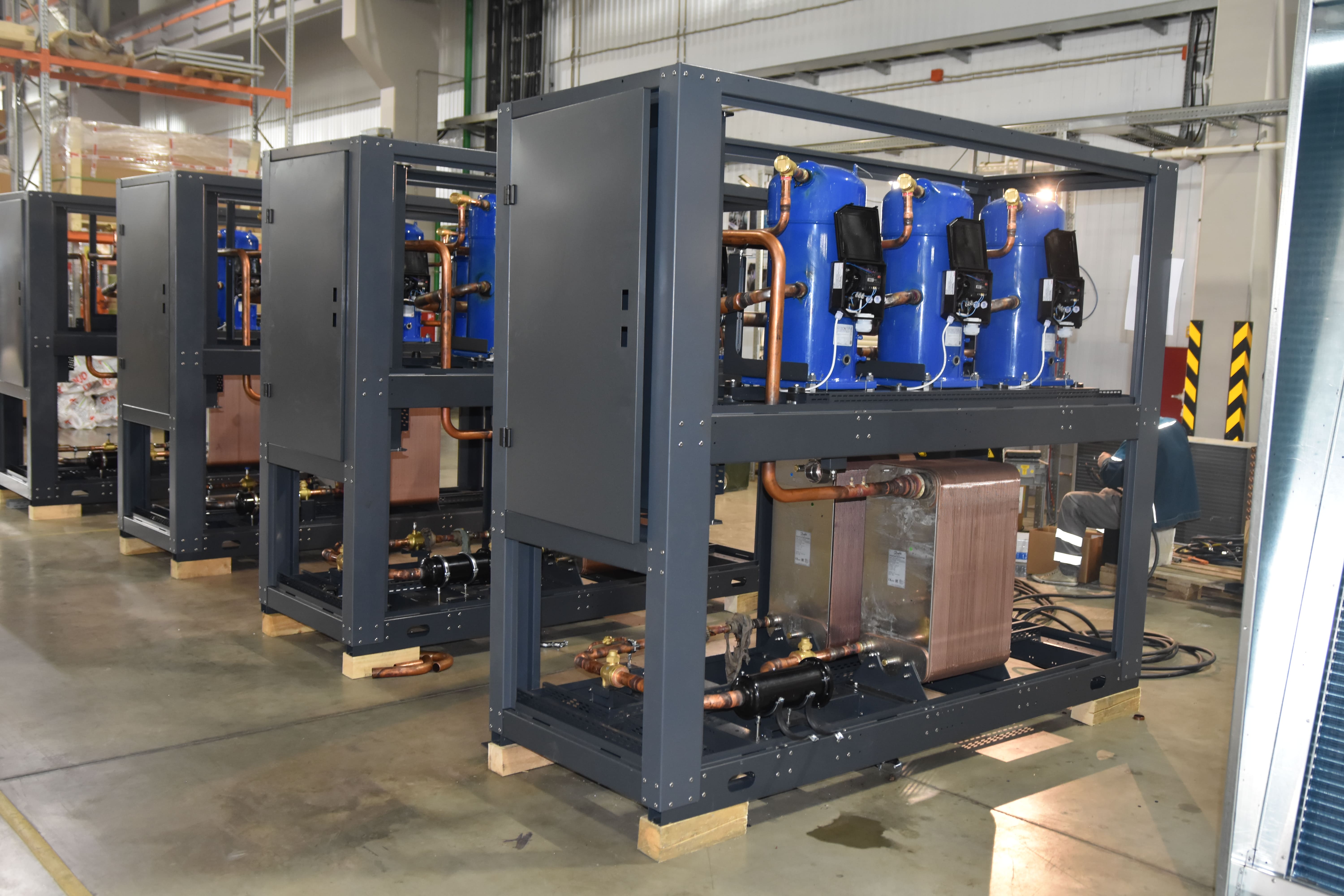 Чиллеры с водяным охлаждением конденсатора на спиральных компрессорах Danfoss - 5 шт., QоΣ= 3,9 МВт, +2 °С